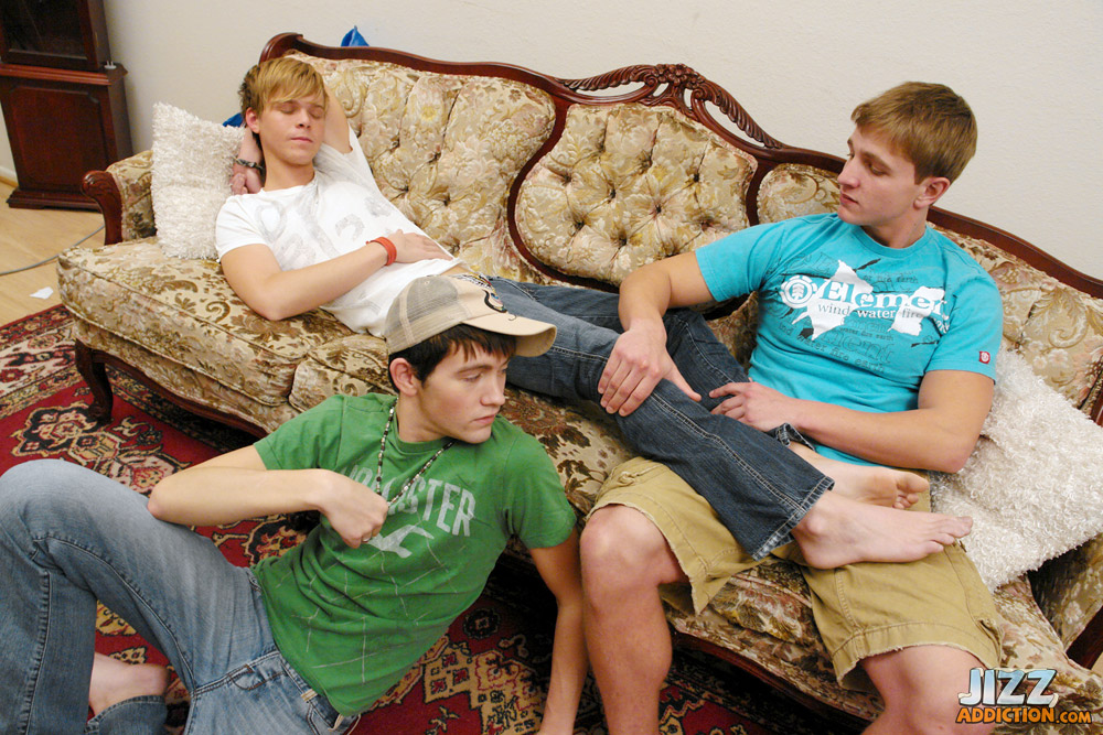 Sterling Rhodes licks anal hole of his gay buddy on the couch before ass fucking
